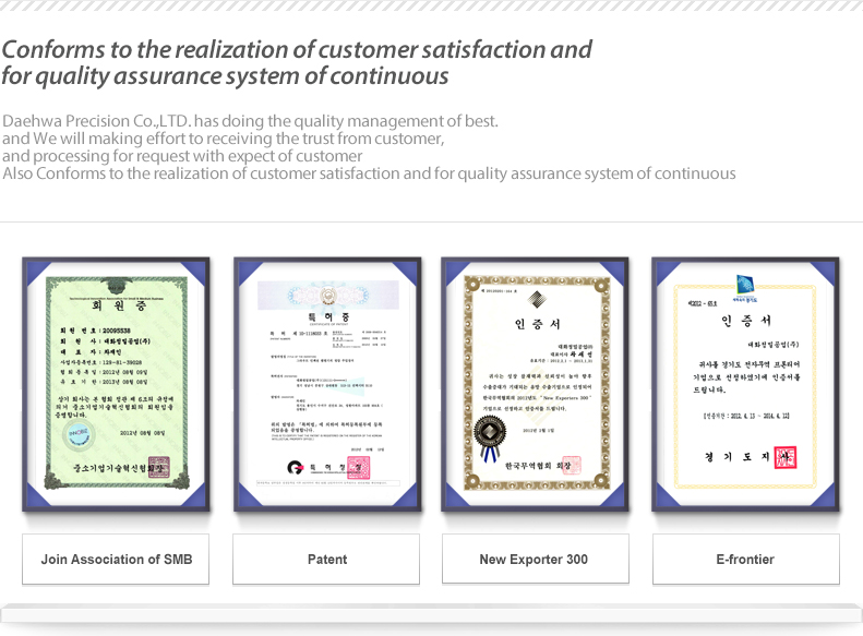- 대화정밀공업은 최고 품질의 자재를 생산하기 위해 노력합니다.